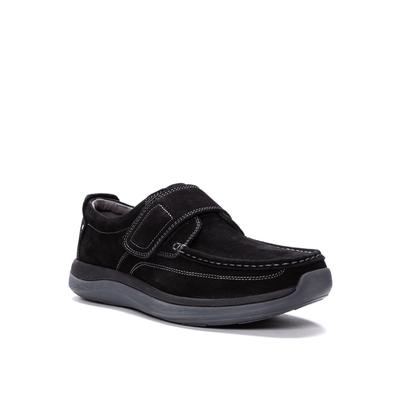 Moc toe with Nubuck upper and wide hook and loop strap closure and micro-fiber lining.Long lasting high density open cell foam breaths and allows air to circulate keeping feet naturally cool. EVA spacer to customize fit.Flexible dual density EVA…